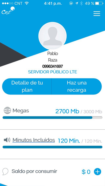 Z CNT Móvil możesz łatwo zarządzać swoimi usługami mobilnymi, niezależnie od tego, czy jesteś użytkownikiem na kartę czy na abonament. Aplikacja umożliwia sprawdzenie stanu konta danych, przeglądanie planu i salda głosowego oraz doładowywanie konta za pomocą karty debetowej Banco Pichincha lub obciążenia go na rachunku miesięcznym. Dodatkowo, możesz przesyłać saldo lub dane do innych użytkowników oraz wygodnie sprawdzać należną kwotę za swoją linię mobilną.